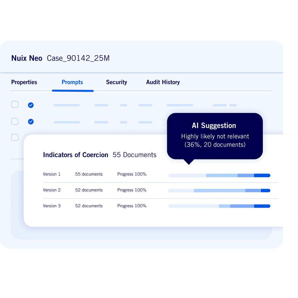 New in Nuix Neo Discover our AI Review capability accelerates document review. It automatically applies preliminary coding, highlights key issues, and flags materials for human review. With clear relevancy scores and natural language explanations, it transforms hours of manual review into rapid insights.
